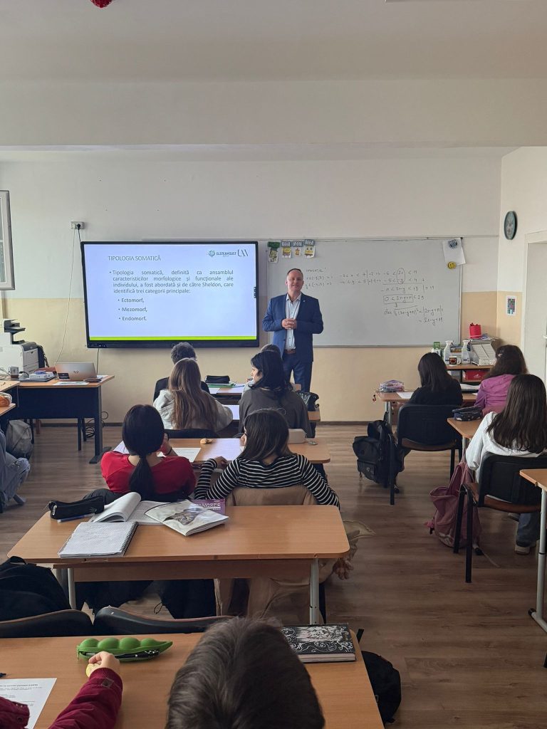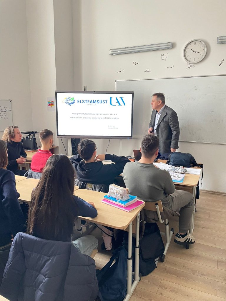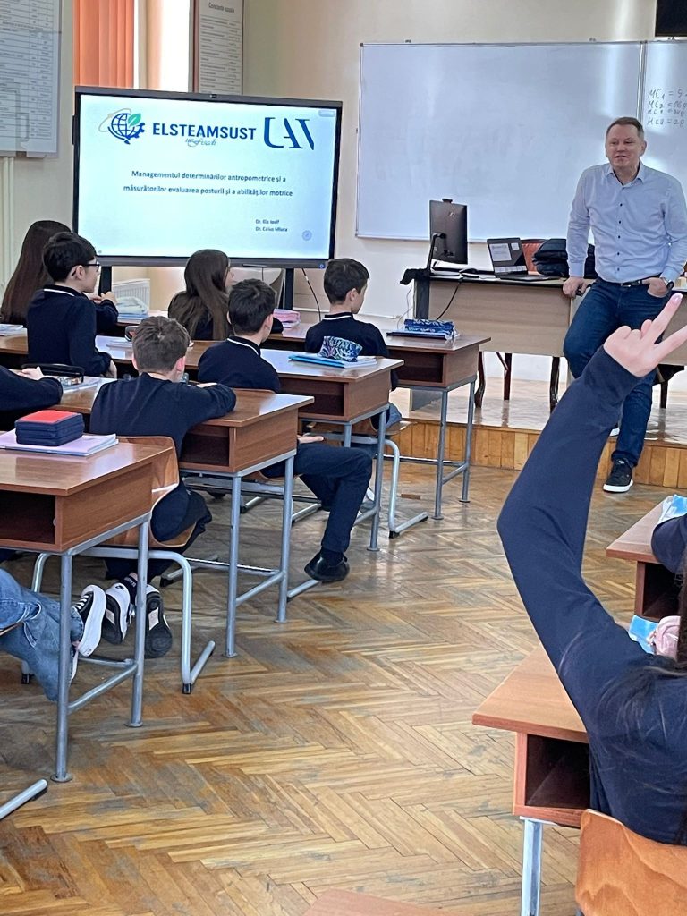Cadrele didactice de la Facultatea de Educație Fizica și Sport , dna conf.univ.dr Dulceanu Corina și lect.univ.dr Piscoi Georgeta au susținut prelegerea cu titlul “Importanța posturii corecte a corpului, evaluareaacesteia pentru o viață sănătoasă “, activitate în cadrul proiectului ELSTEAMSUST PN-IV-P10-SS-SC-2024-0128-Știința în Scoli.